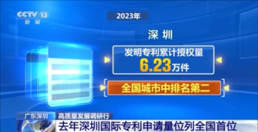 数据炫耀,2023年,深圳发明专利累计授权量6.23万件,寰球城市中排行第二;PCT海外专利肯求量1.59万件,约占寰球总量23.05%,陆续保持在寰球首位。