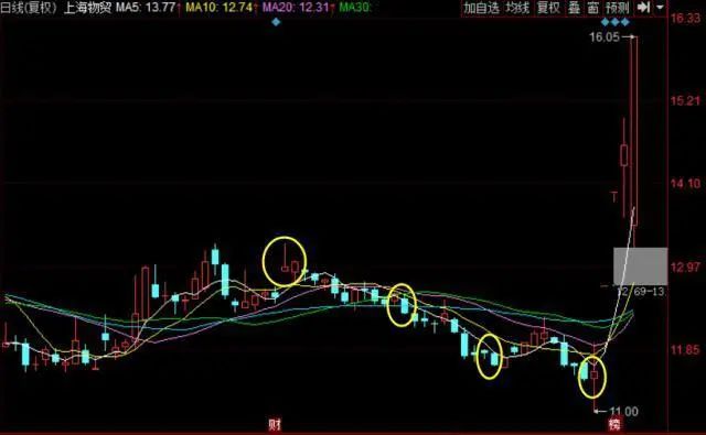 以上海物贸(600822)为例,假设第一次建仓是13元,尔后股价无间下落,越跌越买,何况加仓比例越来越大,如下图3-4次加仓皆是没问题的。跟着行情的开启,股价赶快冲突平均本钱线、开动本钱线,最终抄底宣告到手。