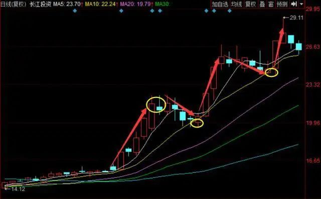 以长江投资(600119)为例,咱们在行情启动之初初度建仓,之后股价有两次冲高诊治,咱们进行两次固定比例加仓。如斯一来,若股价回落的话,仓位不至于一说念被套,不错运用加仓摊薄本钱,若股价按预期径直上升,有一定比例仓位在内部,仍有赢利空间。