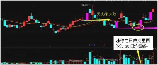 细节2:买入是等成交量在涨停板近邻,再次栽植20日均量线。