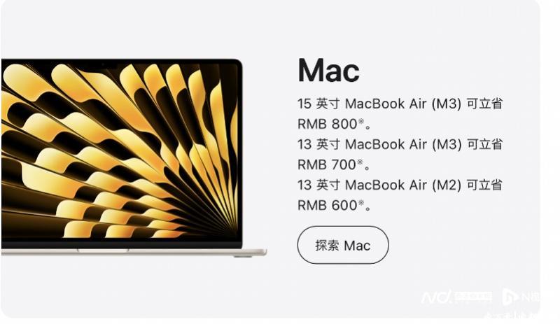 Mac居品的优惠力度在本次促销活动中最大,13英寸MacBook Air (M2) 可优惠600元,而15英寸MacBook Air (M3) 则凯旋降价800元。其他几类居品的降幅基本在100元至400元之间。