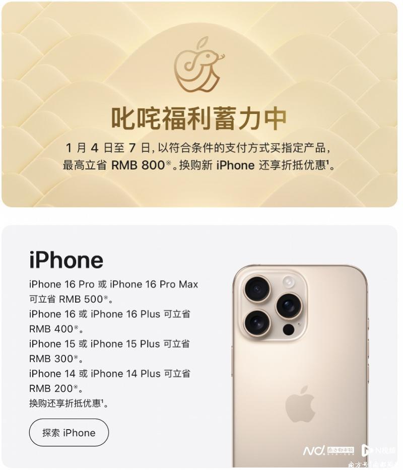 元旦刚过,苹果中国官网公布“怒斥福利”新年促销活动,将于1月4日-7日开启。活动时间,以得当条目的支付形式购买指定商品,每位顾主每个居品类别限购两件,最高立省800元东谈主民币,换购新iPhone另有折抵优惠。